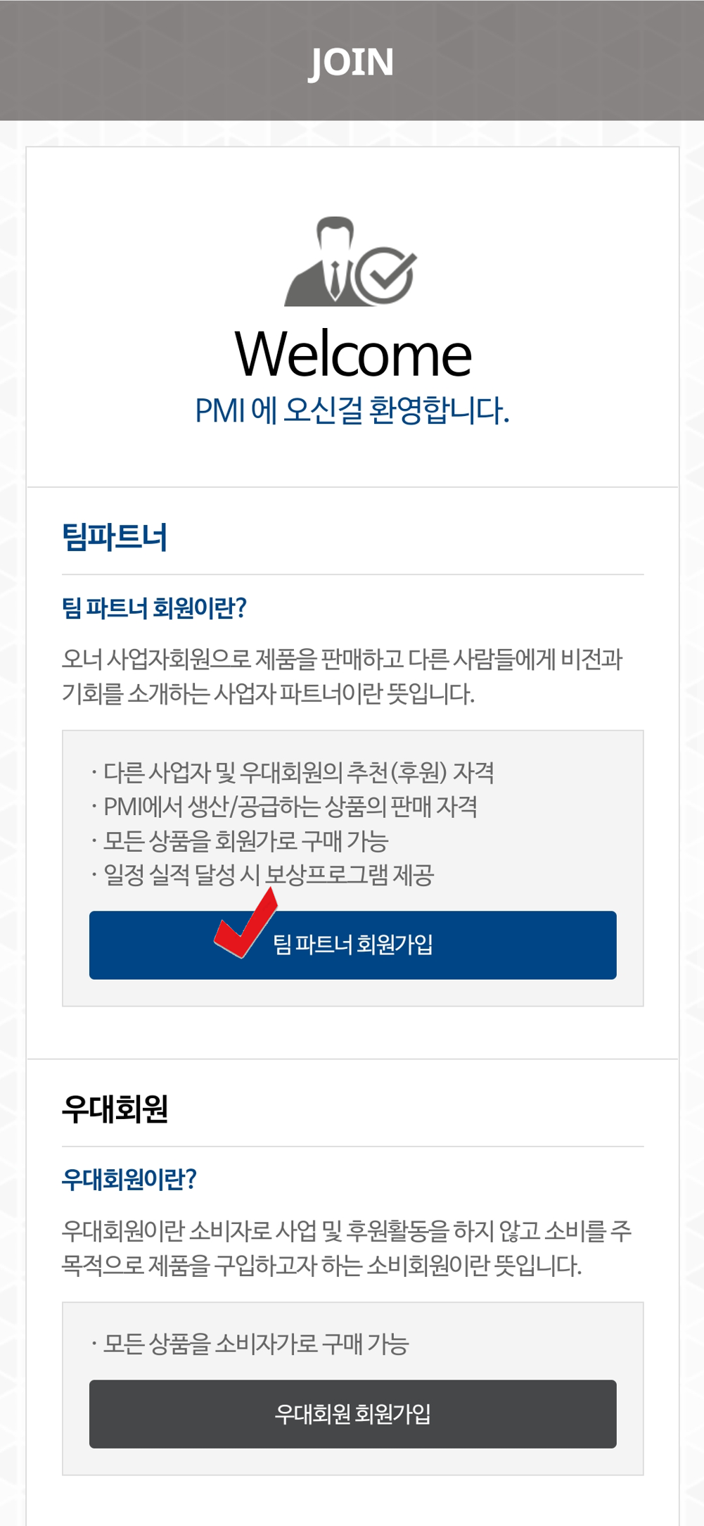 그리고 중요한 것 하나! 추천인이 있어야 팀 파트너로 가입할 수 있습니다.