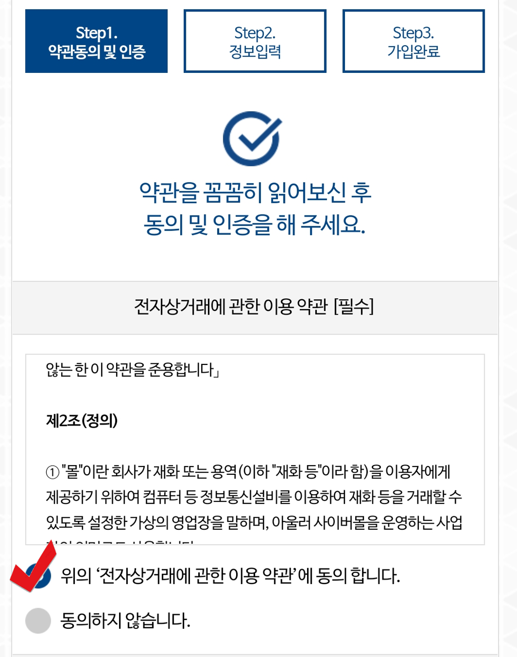 5. 전자상거래에 관한 이용 약관에 동의를 해주시고요~